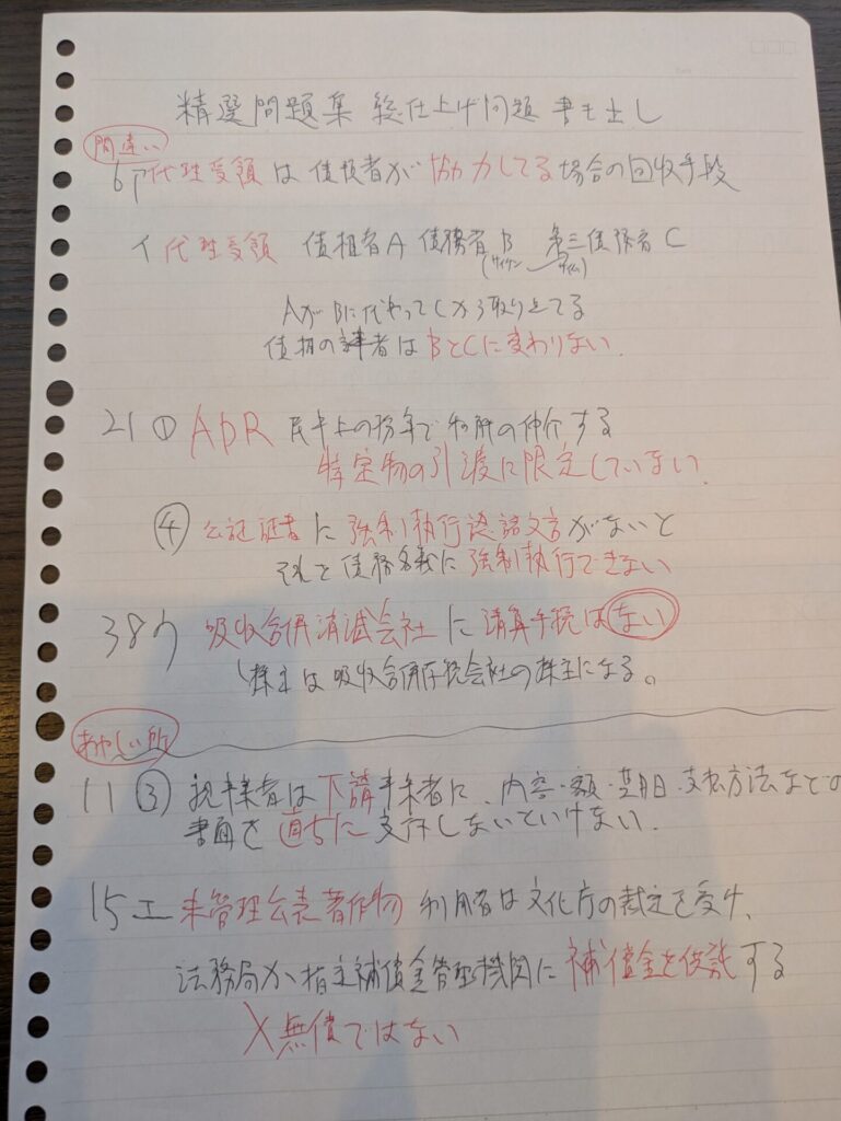 - 苦手な問題の、解説部分を要約して紙にまとめる。
