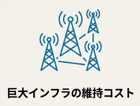 全国どこでも繋がる品質を維持するため、基地局の整備や5G設備の更新に莫大なコストがかかっています。