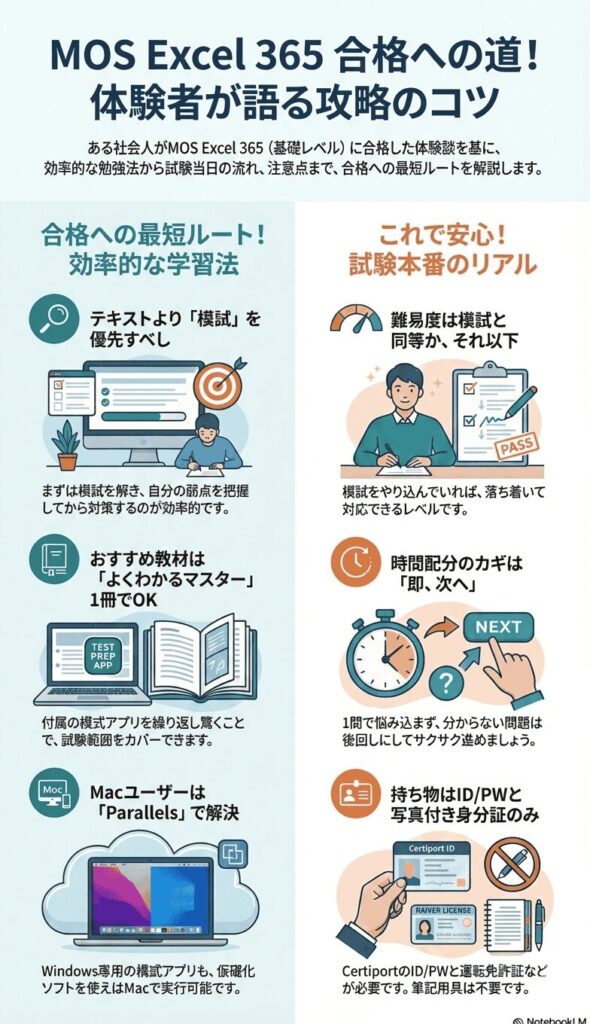 - 鯉次郎はMOS Excel 365(基礎レベル)を受験。